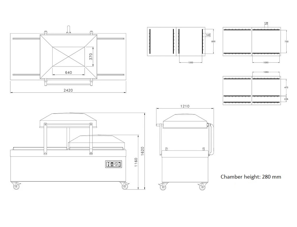 - Barres de soudure à impulsion biactives standard de 8 mm et chambres à lit plat faciles à nettoyer.