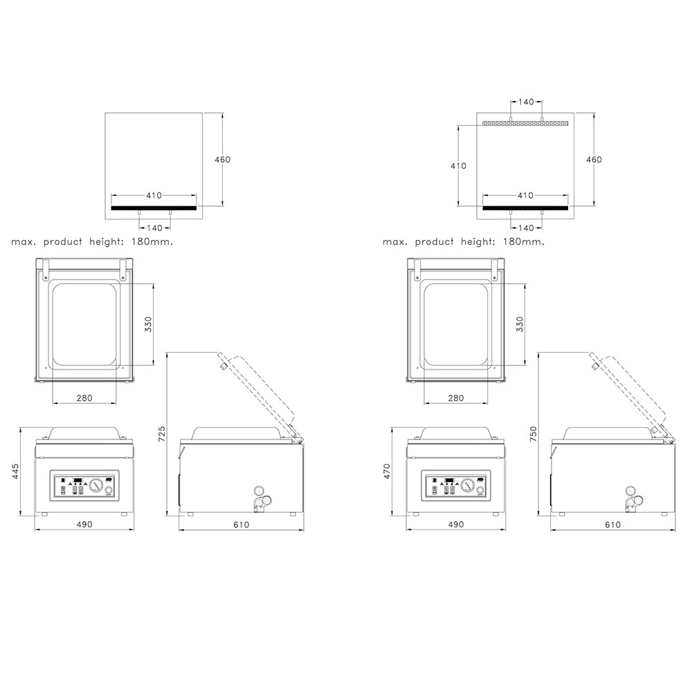 Une soudure de 8 mm de large est possible pour donner au sac sous vide un aspect esthétique et professionnel. Lors du scellage de sacs en aluminium ou plus épais, un système de soudure bi-actif peut être intégré, réalisant une soudure de 5 mm des deux côtés du sac : de haut en bas. Ce sceau bi-actif est obligatoire lorsqu’un processus de sceau validé est requis.