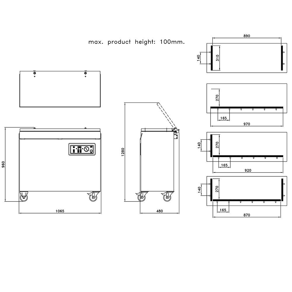 Avec ses dimensions effectives de chambre de 320 x 890 x 100 mm, cet Audionvac est idéale pour les produits longs. Cette machine a déjà fait ses preuves, notamment dans l'industrie du poisson. Grâce à sa flexibilité dans les options, elle trouve une excellente utilisation sur divers autres marchés qui optent pour la commodité et des performances constantes.