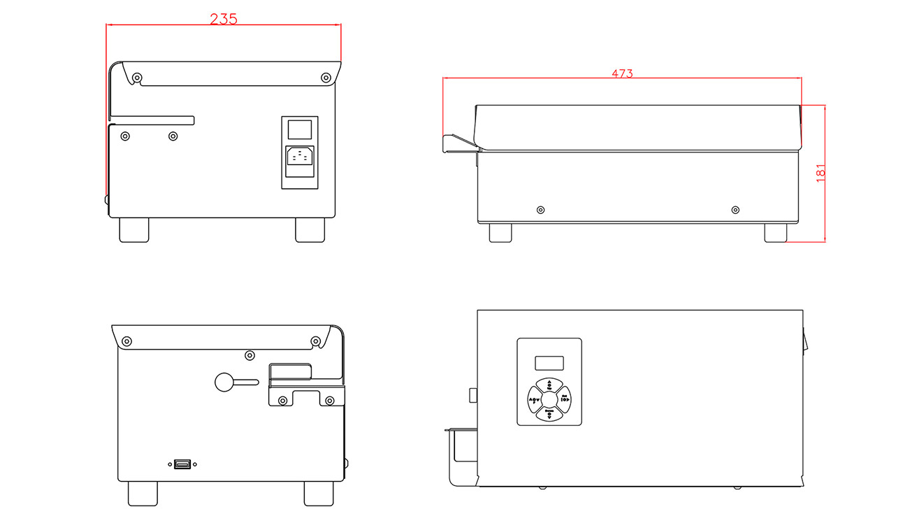 4. Control panel: LCD, 2 lines, membrane keyboard